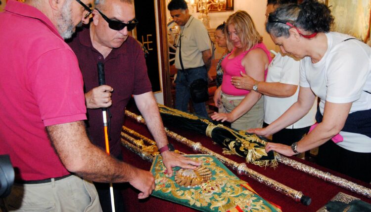 Una docena de afiliados de la ONCE con discapacidad visual, tres de ellos también auditiva, que estuvieron acompañados por intérpretes, han girado esta mañana visita …