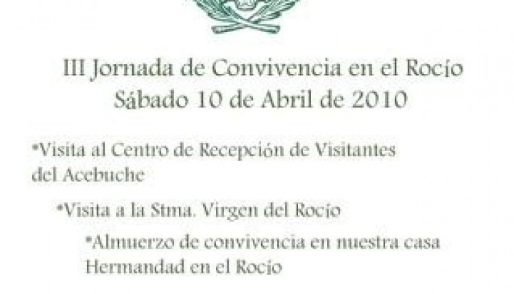 El próximo sábado día 10 de Abril, la Hermandad celebrará su III Jornada de convivencia en la Aldea. La salida se realizará desde el polideportivo …