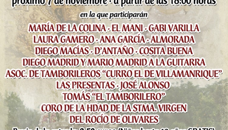 La Hermandad de Olivares organiza una Gran Velada Rociera para el día 7 de noviembre de 2015.