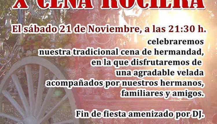 La Hermandad de Olivares organiza la X Cena Rociera para el próximo 21 de noviembre de 2015.