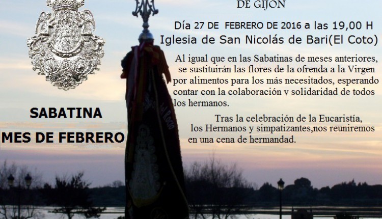 La Hermandad de Gijón celebra la SABATINA de FEBRERO 2016 el próximo día 27.