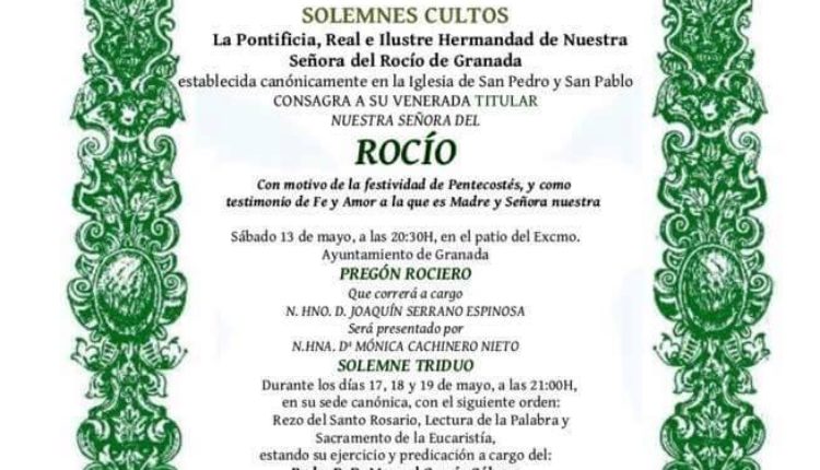 La Hermandad de Granada celebra Solemne Triduo y Pregón Rociero a cargo de D. Joaquín Serrano Espinosa