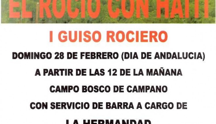 El Rocío con Haiti. I Guiso Rociero organizado por la Hdad. de Chiclana, domingo 28 de febrero a las 12 de la mañana en Campo …