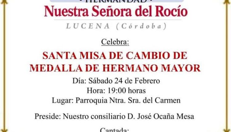 La Hermandad de Lucena de Córdoba celebra Santa Misa y Cambio Medalla Hermano Mayor