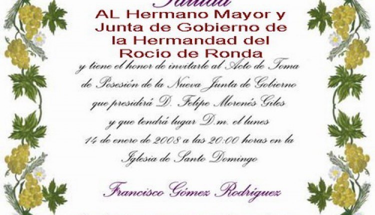 Soy el nuevo Hermano Mayor de la Real Hdad. de N. S. del Rocio de Jerez. Quiero participar a la Junta de Gobierno de esa …