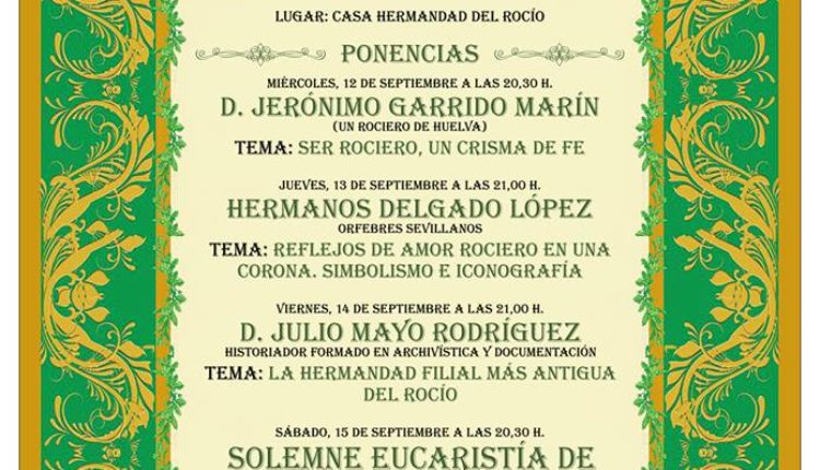 Conferencia: “Los orígenes de la devoción rociera en Sevilla y Triana”. A cargo de Julio Mayo. Capilla del Rocío de Triana, C/ Evangelista, 23. 20.30 …