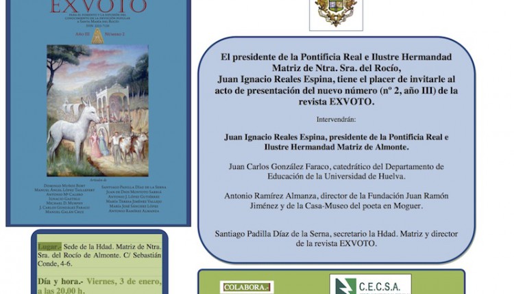 El próximo día tres de enero, a las 20,00 h., en la casa de nuestra hermandad, se presenta el último número de la revista EXVOTO …