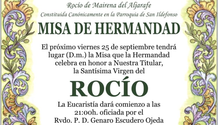 Peregrinaciones Extraordinarias de las Hermandades del Rocío del viernes 1, sábado 2 y domingo 3 de noviembre 2024- Misas en DIRECTO