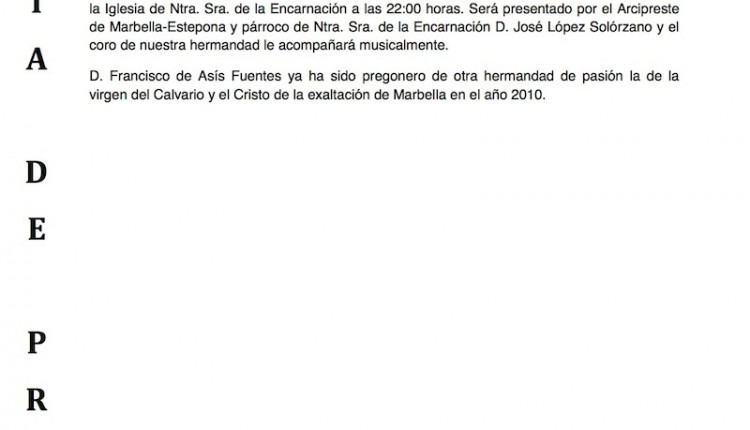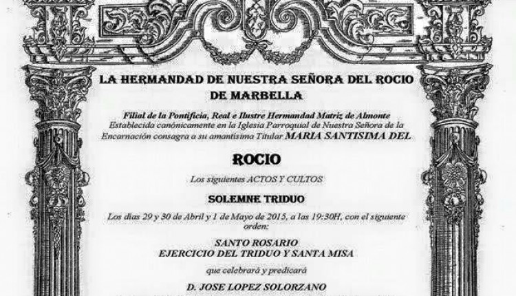 La Hermandad de Marbella celebrará Solemne Triduo los días 29,30 de abril y 1 de mayo.