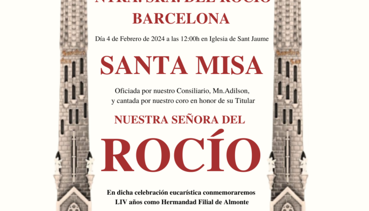 Este domingo 5 de febrero de 2023 la Hdad.Ntra.Sra. del Rocío de Barcelona celebra su 53 aniversario coincidiendo con su misa mensual de primero de …