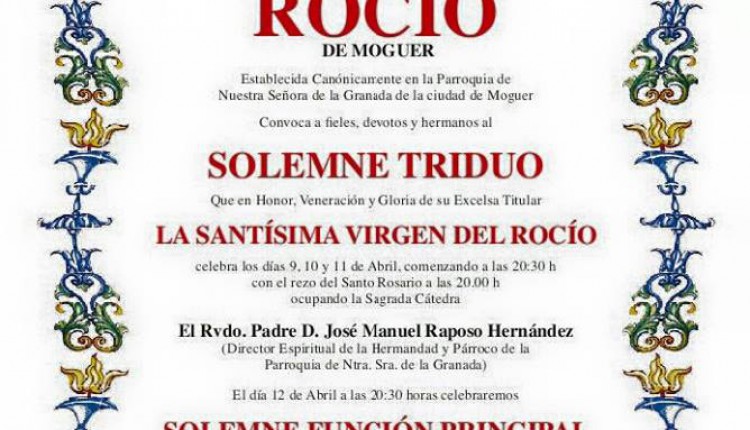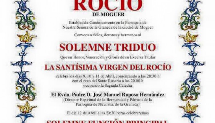 Los próximos días 9, 10 y 11 de Abril la Hermandad de Moguer celebra en Honor, Veneración y Gloria de su Excelsa Titular, Nuestra Señora del …