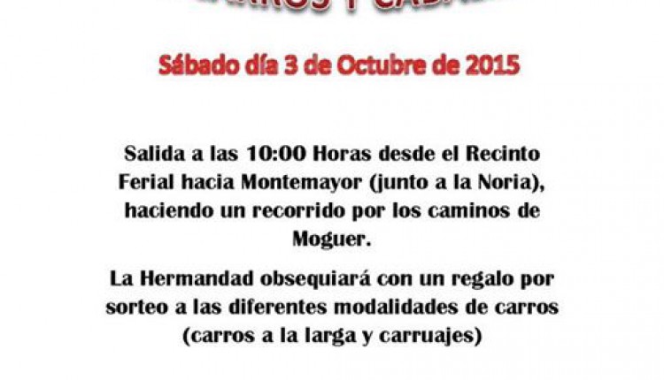 La Hermandad de Moguer organiza su X Concentración de Carros y Caballos el próximo 8 de octubre de 2016
