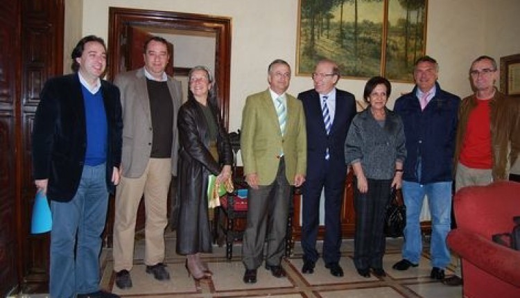 El alcalde de Chucena, Antonio Rubio, junto al presidente y el secretario de la Hermandad del Rocío de nuestro pueblo, Elías Caraballo y José Fernando …