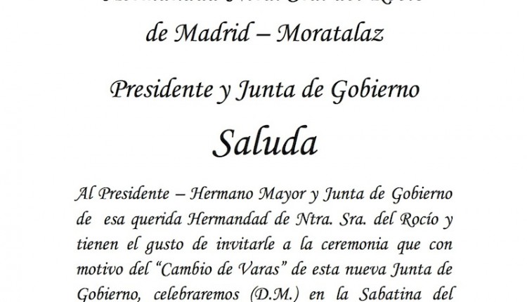 Hdad. de Moratalaz – Con motivo de su XIX Salida Oficial, la Hermandad de Nuestra Señora del Rocío de Madrid Moratalaz organiza los siguientes actos …