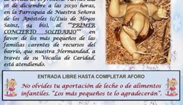 La Hermandad de Moratalaz organiza el primer Concierto Solidario el 16 de diciembre de 2016