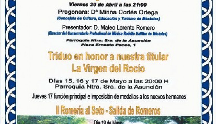 XX Romeria Rociera en Móstoles Organiza: Centro Regional de Andalucia en Móstoles Colabora: Hdad. Nuestra Señora del Rocio de Móstoles.Sábado 12 11h. Salida de la Virgen …