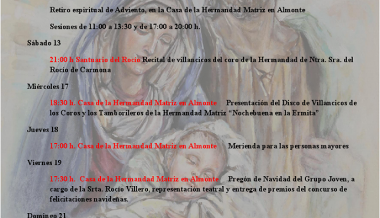 Programación de Adviento y Navidad de la Hermandad Matriz de Almonte.