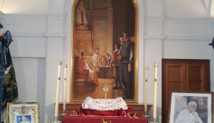 Reliquia de S.S. Juan Pablo II expuesta para su veneracion, coincidiendo con el 20 aniversario, de su visita al Santuario de Ntra. Sra de El …