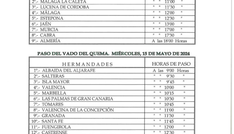 Horarios del Paso de Hermandades del Rocío por Coria del Río 2023 Horarios en Formato pdf