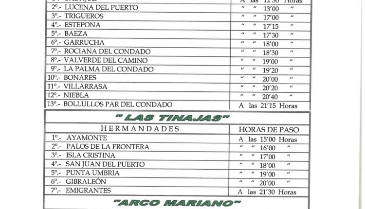 Horarios de Paso Rocío 2024 – Caminos de Huelva