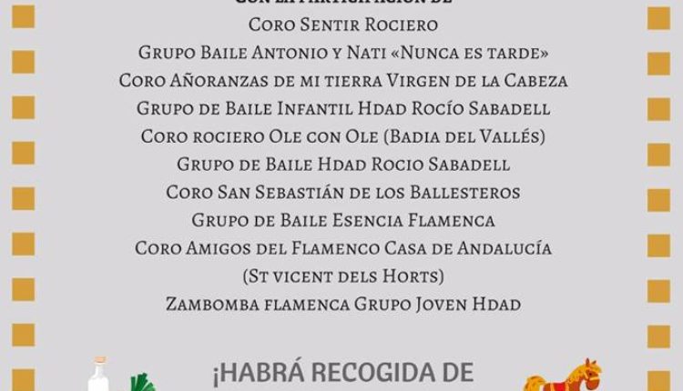 Peregrinaciones Extraordinarias de las Hermandades del Rocío del  del domingo 13 de noviembre de 2022 Domingo 13 9 horas – *Sabadell 10 horas- Almería, Santander, Roquetas, El Ejido, …
