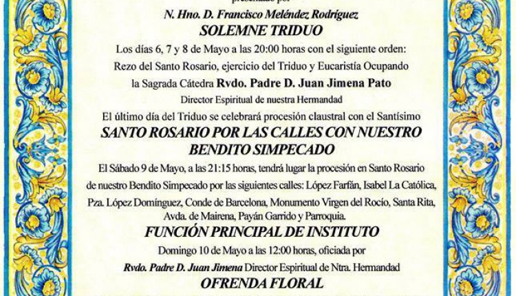 Peregrinaciones Extraordinarias de las Hermandades del Rocío del domingo 14 de diciembre 2025 Domingo, 14 9 horas- 10 horas- Valencina 11 horas- Tocina 12 horas- Villalba del Alcor 13 …
