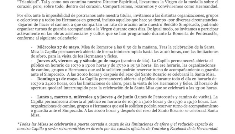 Peregrinaciones Extraordinarias de las Hermandades del Rocío del sábado 1 y domingo 2 de noviembre 2025