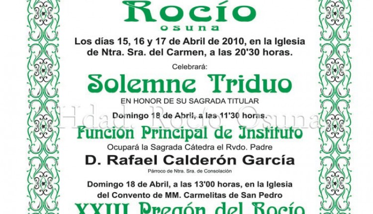 Finalizado el Triduo de la Hdad. tendrá lugar mañana domingo día 8 a las 13 h. el XV Pregón Rociero que correrá a cargo de …