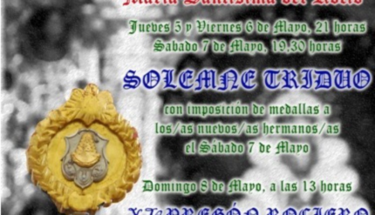 Los días 11, 12 y 13 de Mayo a las 21.00 horas, se celebraran Solemnes Cultos en Honor a María Santísima del Rocío con el …