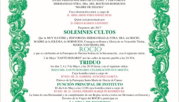 La Hermana Mayor y la Junta de Gobierno de la Hermandad de Nuestra Señora del Rocío de Gijón tienen el honor de comunicarle los solemnes …