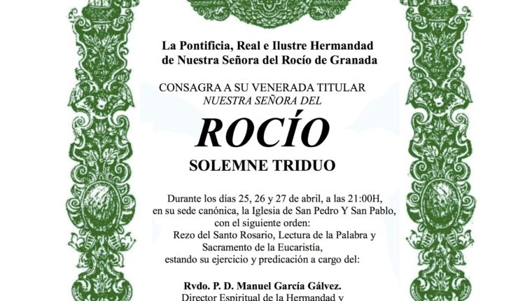 La Hermandad de Granada celebra Solemne Triduo y Pregón del Rocío a cargo de D. Luis Bernal Sánchez