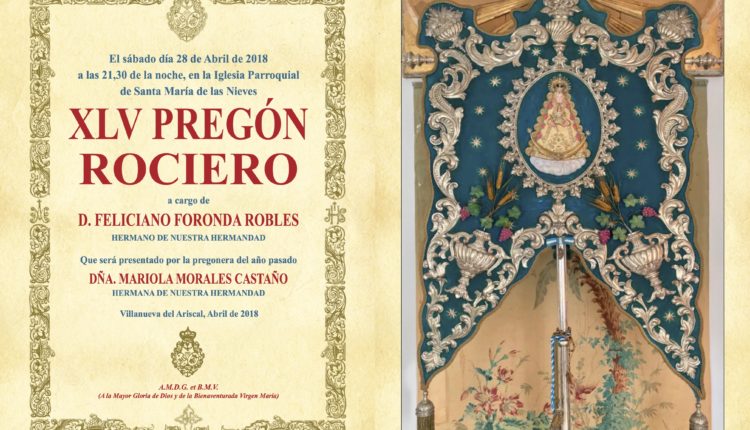 El día 29 de Abril de 2018 a las 13:30 horas EN EL CENTRO CULTURAL “LA ATARAZANA” será presentado el XXXIX PREGÓN ROCIERO DE LA …