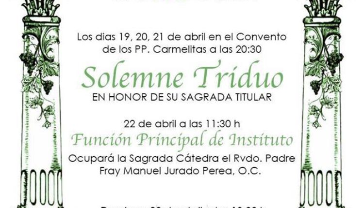 La Hermandad de Mairena del Aljarafe celebra Solemne Triduo los días 24,25 y 26 de abril de 2018