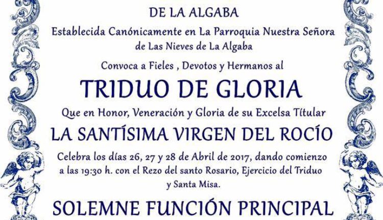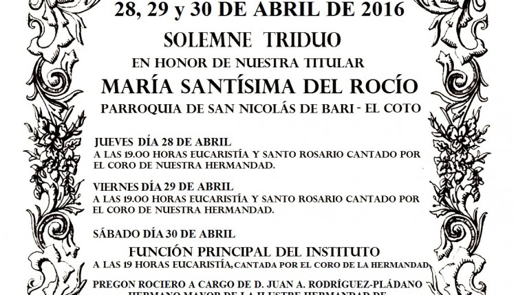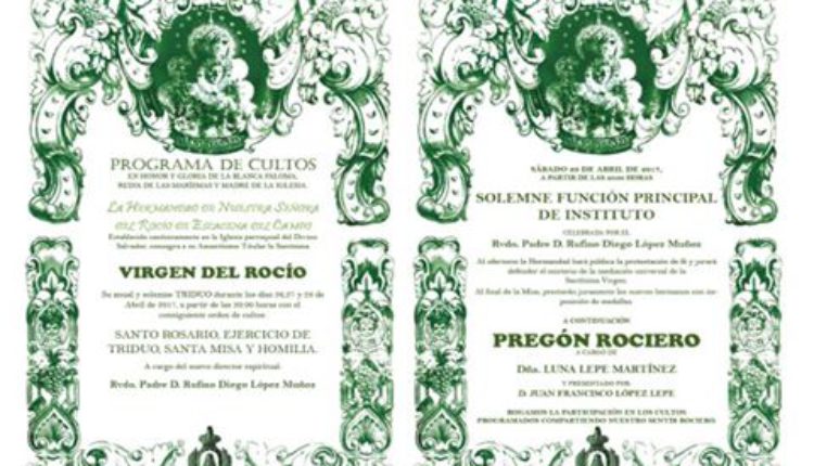 La Hermandad de Las Cabezas de San Juan celebra Solemnes Cultos Rocío 2016 durante los días 27,28 y 29 de abril.