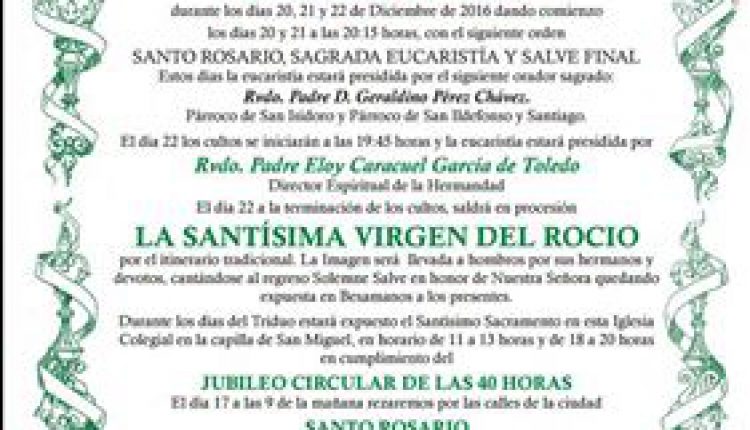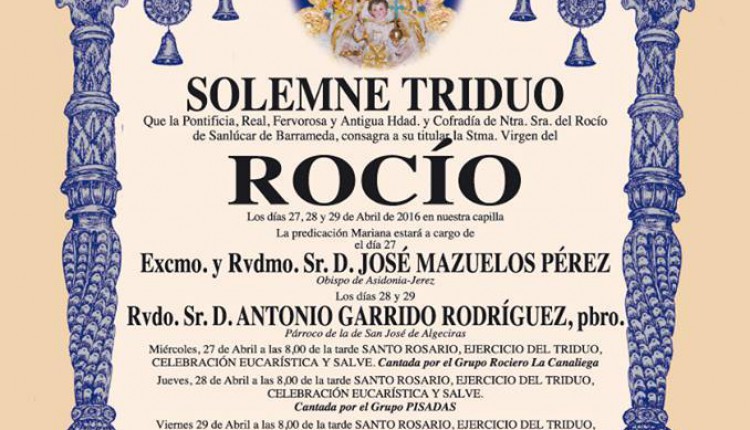 La Hermandad de Sanlúcar de Barrameda celebra Solemne Triduo Rocío 2016.