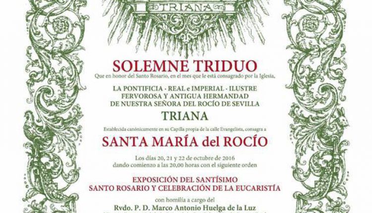 La Hermandad de Triana celebra Solemne Triduo con motivo de su Peregrinación Extraordinaria el próximo 1 de noviembre PRIMER DÍA DE SOLEMNE TRIDUO EN EL MES DEL …