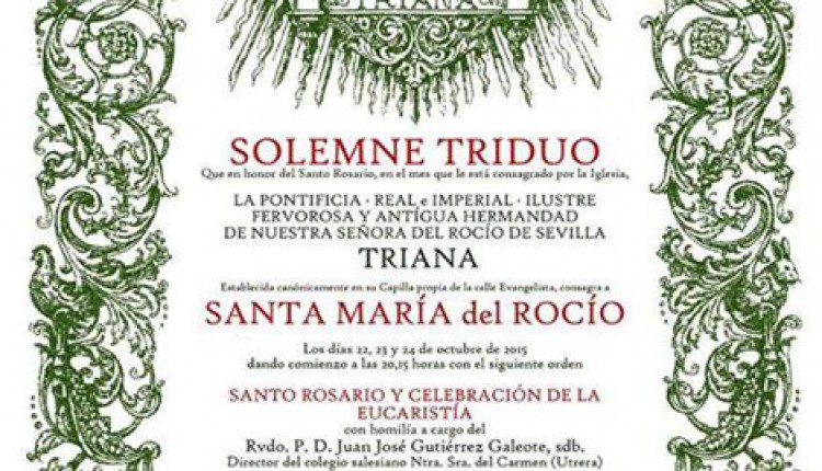 La Hermandad de Triana celebra Solemne Tríduo en la Capilla de la Hermandad los días 22, 23 y 24 de octubre de 2015.