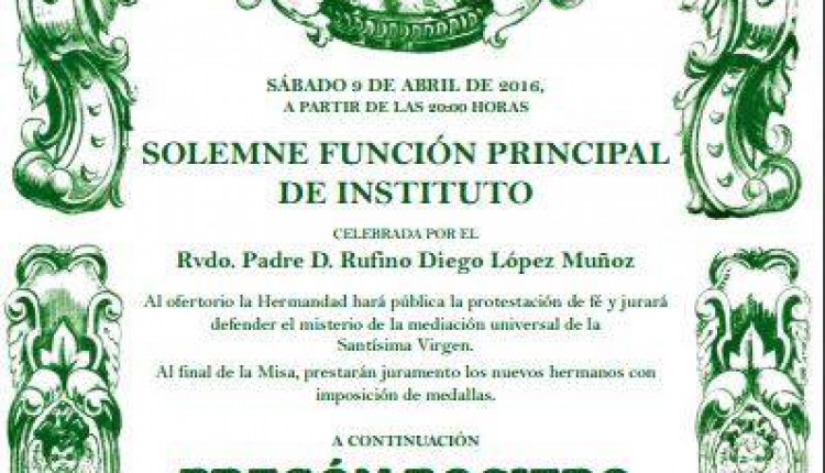 La Hermandad de Algeciras celebra Pregón a cargo de Doña Trinidad Murgado Pérez y Solemne Triduo 2016
