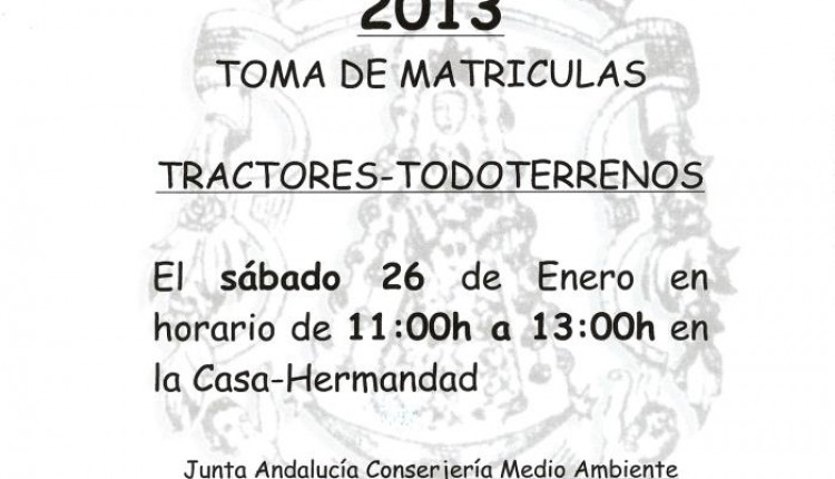 Hoy sábado de 11 a 13 horas toma de matriculas para la peregrinación 2013.