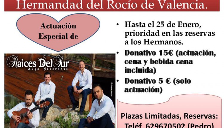 La Hermandad de Valencia organiza para el 13 de febrero una actuación especial del grupo «Aires del Sur».