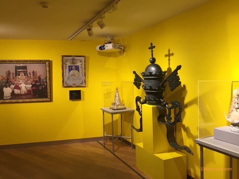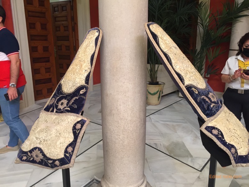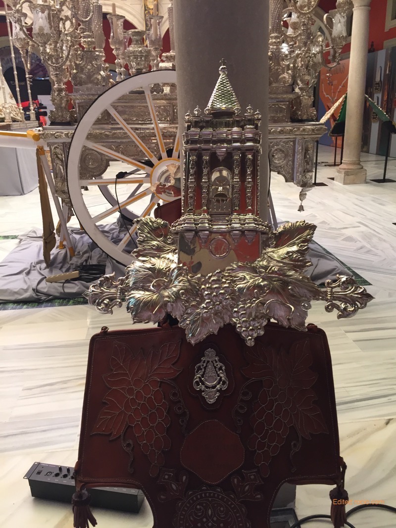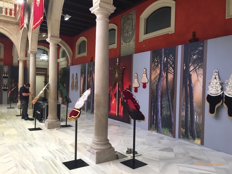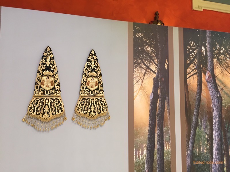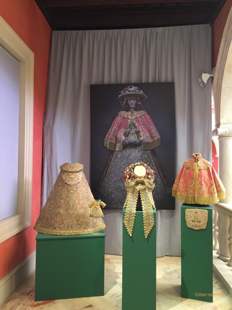 Entre los enseres que podemos disfrutar estarán desde el ajuar de la Santísima Virgen, hasta los más diversos objetos artísticos religiosos, en una continuidad expositiva e histórica. Enseres de un valor incalculable como las coronas de la patrona de Almonte y su Divino Hijo, el Pastorcito. Entre muchos otros enseres o diversas carretas de Simpecados de hermandades filiales con una importancia histórica, como la antigua de Villamanrique de la Condesa, la de Sanlúcar de Barrameda y el cajón de Umbrete.