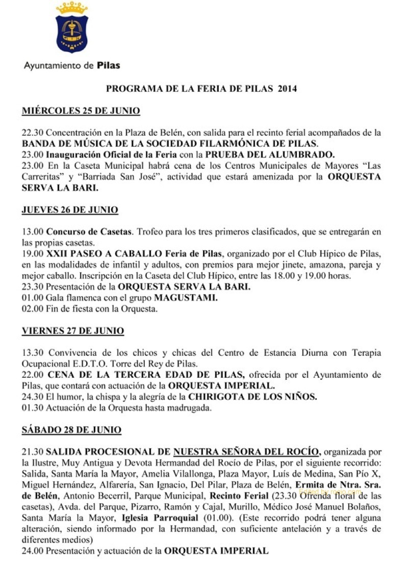 Feria y Fiestas 2014 en Pilas en Honor de Ntra. Sra. del Rocío