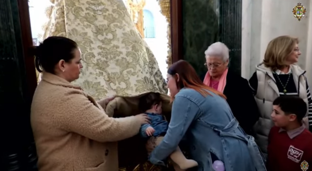 El acto de Presentación de los niños a la Virgen se desarrollará con normalidad, de forma presencial. Pero mantendremos el gesto de poner bajo el manto de Nuestra Madre un pergamino con los nombres de los niños/as que no puedan estar este día en El Rocío.