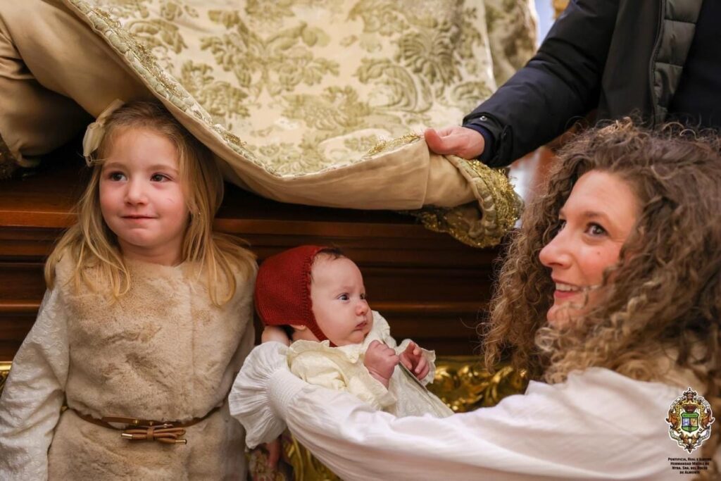 Ya en el domingo, a partir de las 11 horas, se vivirá la jornada más entrañable de esta cita, la Presentación de los Niños a la Virgen, en la que los rocieros más pequeños serán bendecidos al pasar por el manto de la Patrona de Almonte. Cientos de familias venidas de diferentes puntos de la geografía acuden cada año.