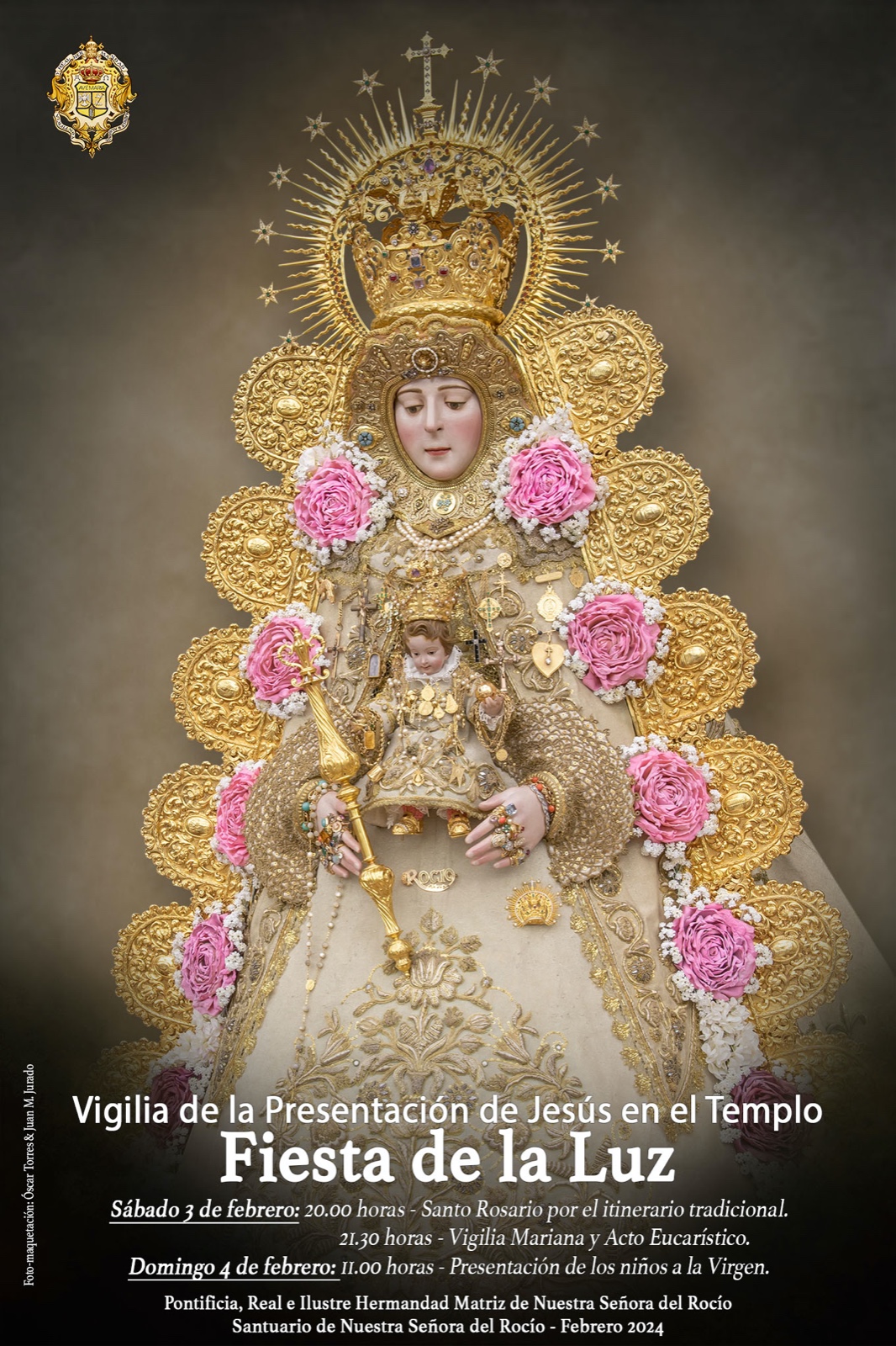 El calendario de peregrinaciones se pausa esta semana en el Santuario de Ntra. Sra. del Rocío para celebrar la Candelaria. Una fiesta en la que la Iglesia recuerda el pasaje bíblico de la Presentación del Niño Jesús en el Templo de Jerusalén. La Hermandad Matriz de Almonte ha organizado diferentes cultos y actos para este fin de semana.