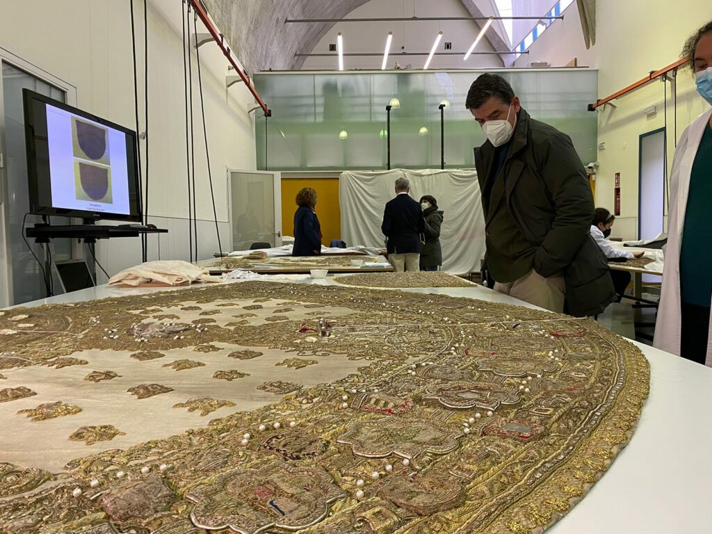 Restauración del manto de los Apóstoles de la Virgen del Rocío