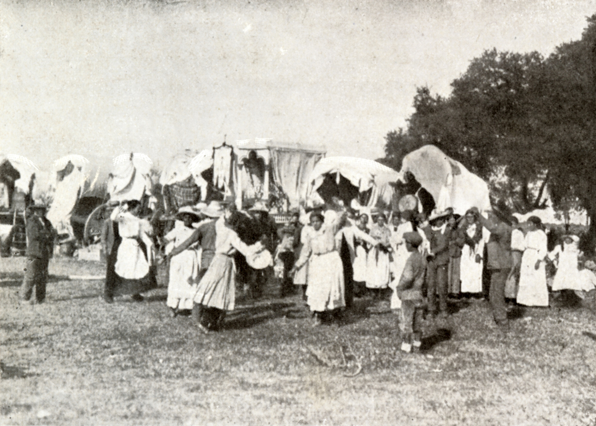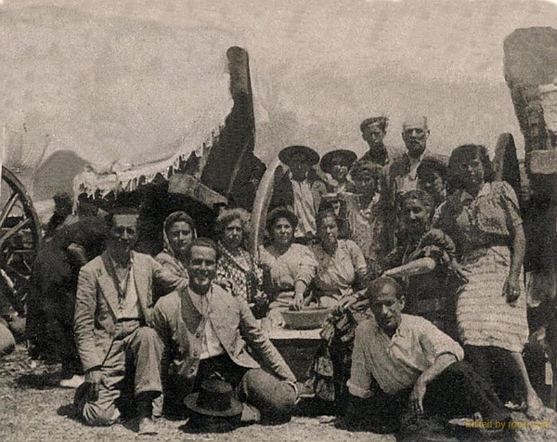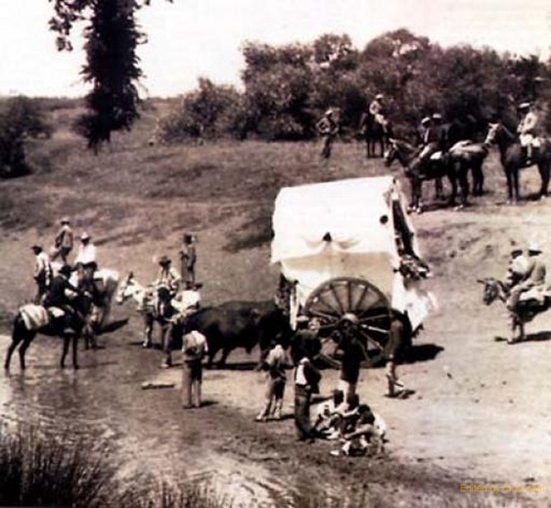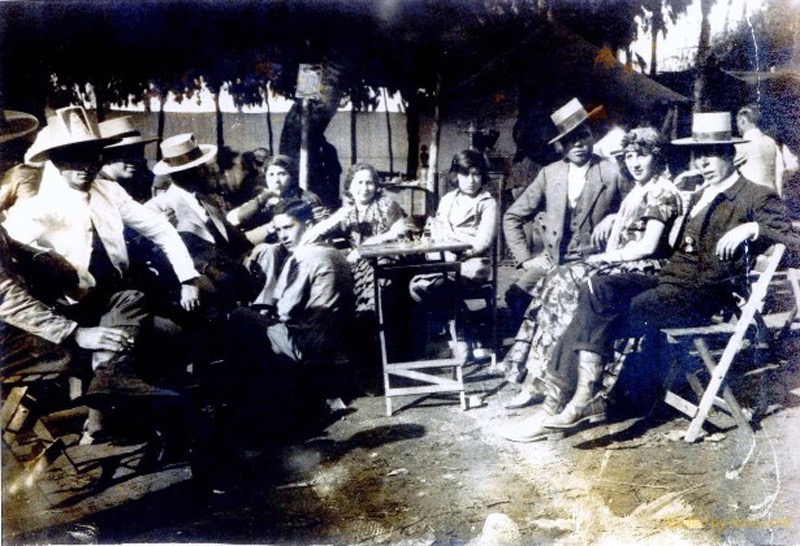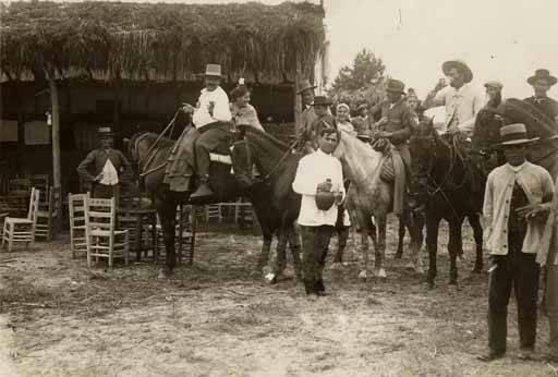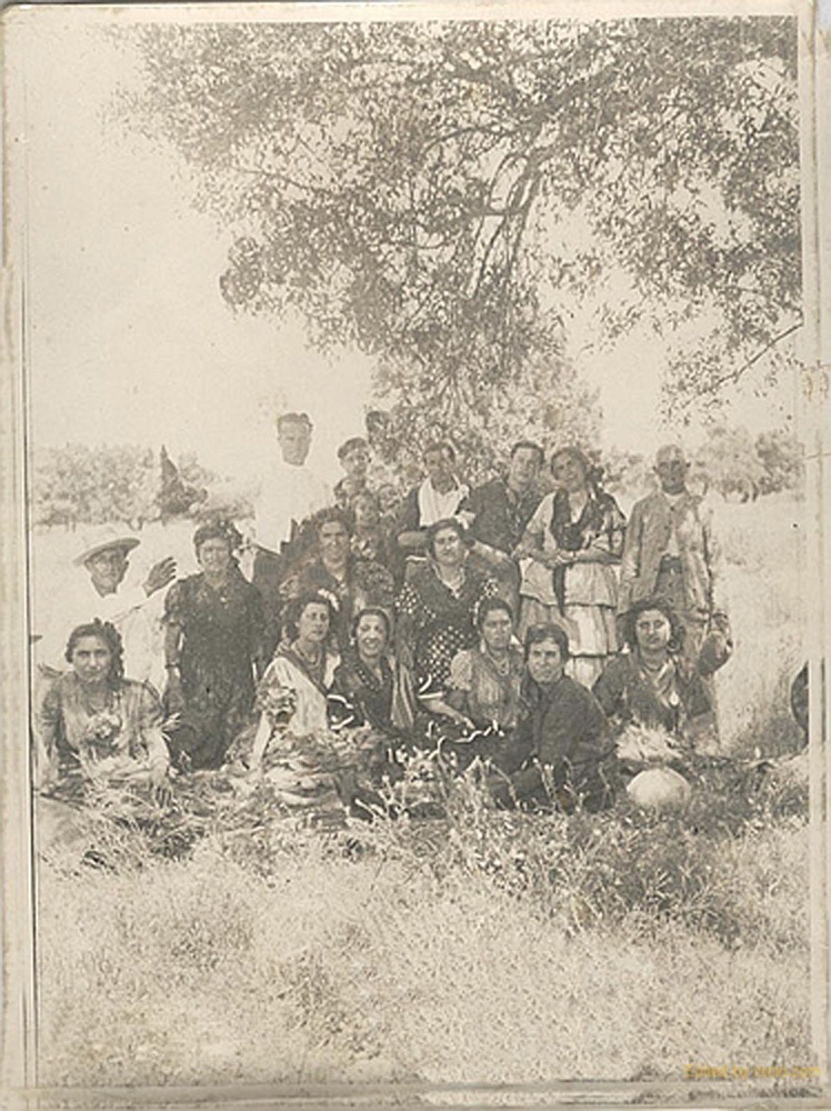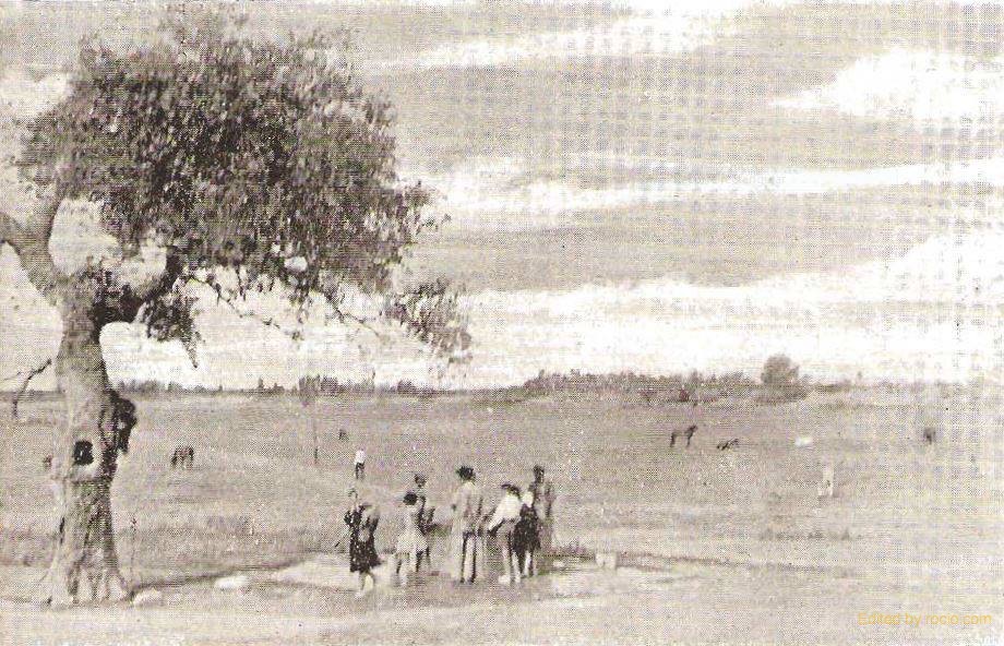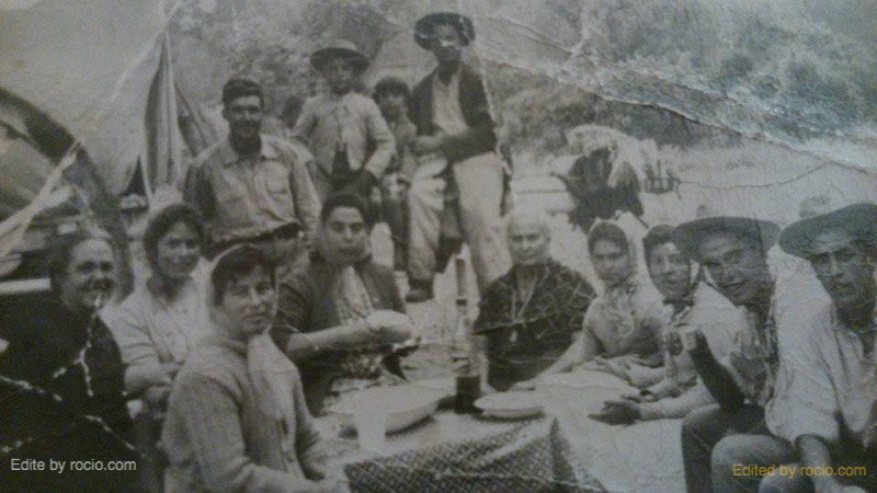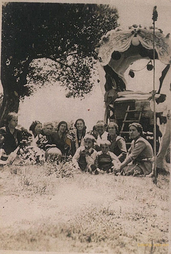 AÑO 1918- Sesteo en el camino hacia el Rocío. En la foto aparecen, entre otros, Manuel Nieto con uno de sus hijos y dos de sus hermanas