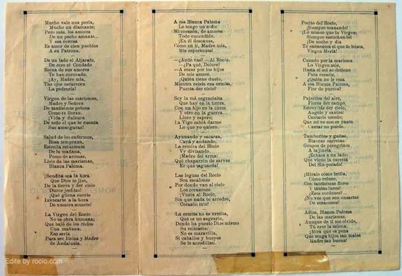 Si dispone de fotos antiguas, le agradeceríamos nos la envíe a info@rocio.com, citaremos su procedencia y contribuirá, aún más, a difundir por el mundo entero la devoción a Ntra. Sra. la Virgen del Rocío.