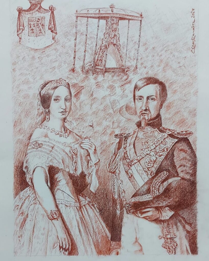 LOS DUQUES DE MONTPENSIER EN LA GALERIA DE PERSONAJES ILUSTRES DE LA MATRIZ. Con motivo del 200 aniversario del nacimiento de S.A.R., el Duque de Montpensier, D. Antonio de Orleans, se ha realizado una Sanguina de el, Hno. de Honor y de su esposa, S. A. R. Doña María Luisa de Borbón, bienhechores de nuestra Hermandad e impulsores de esta devoción en el siglo XIX y en el seno de la familia Real Española y Portuguesa.