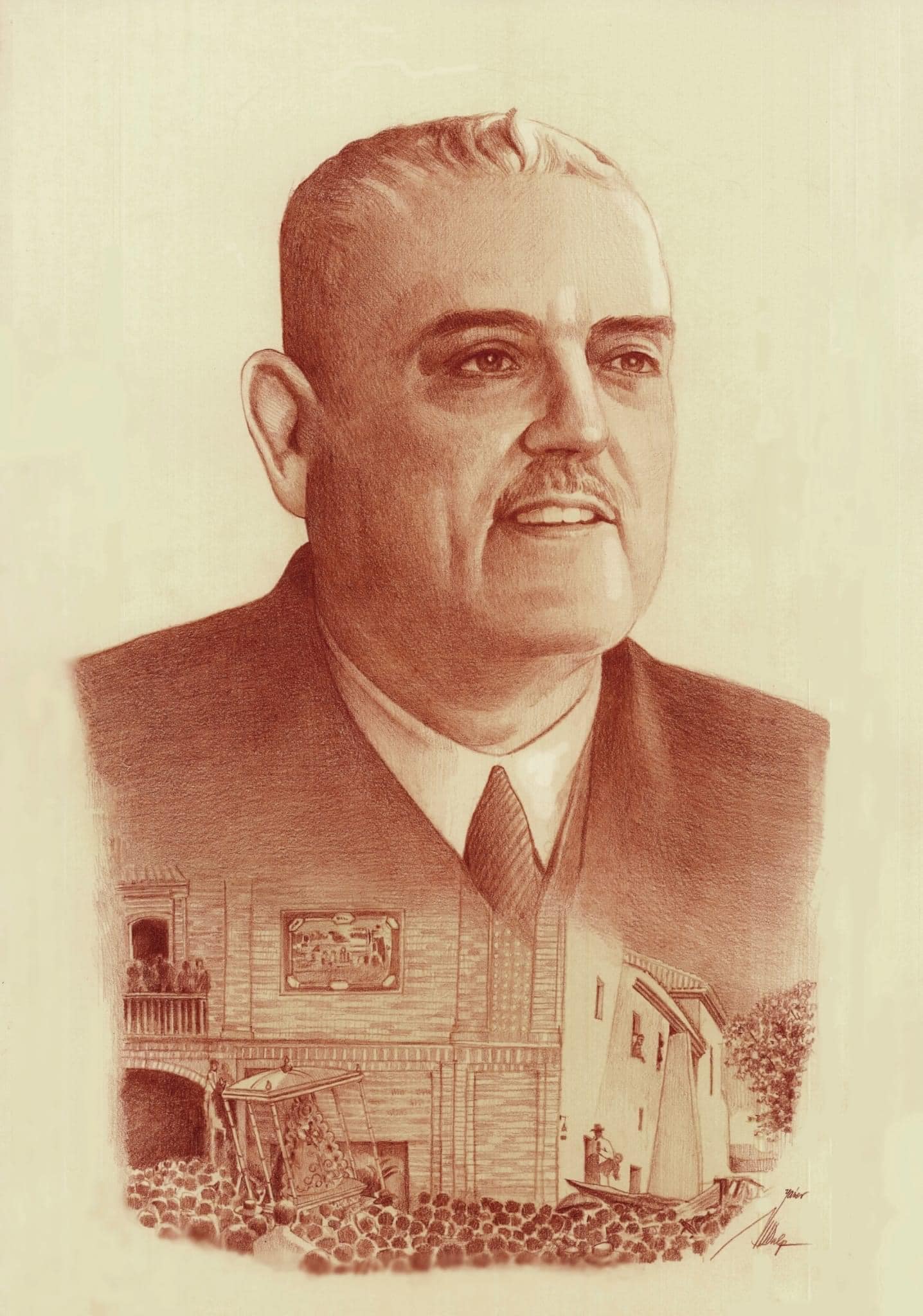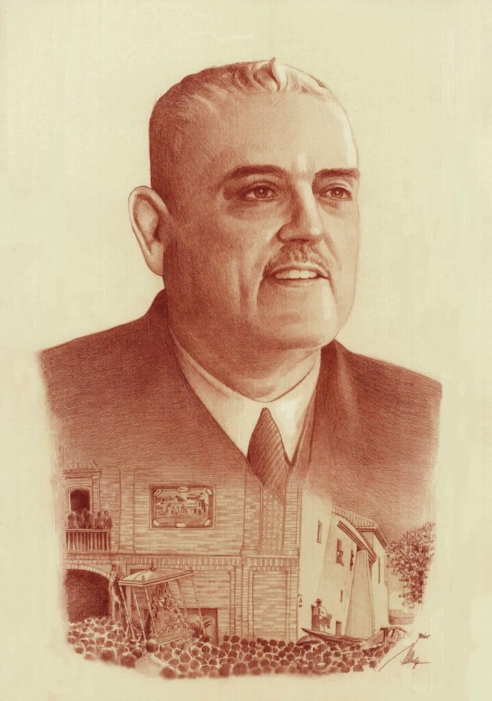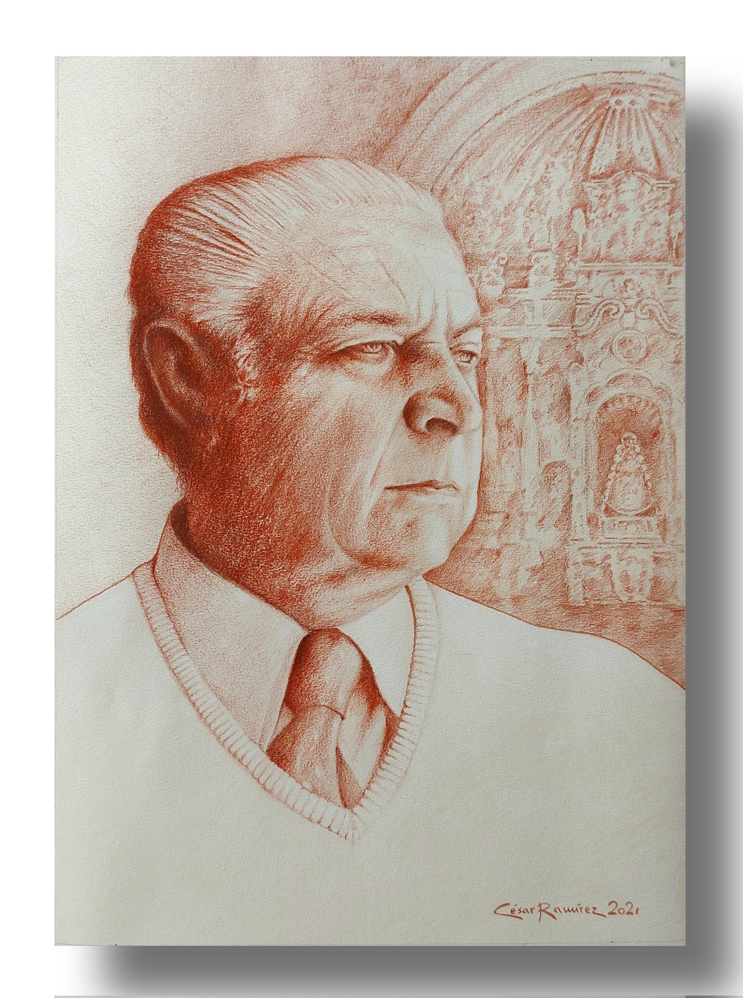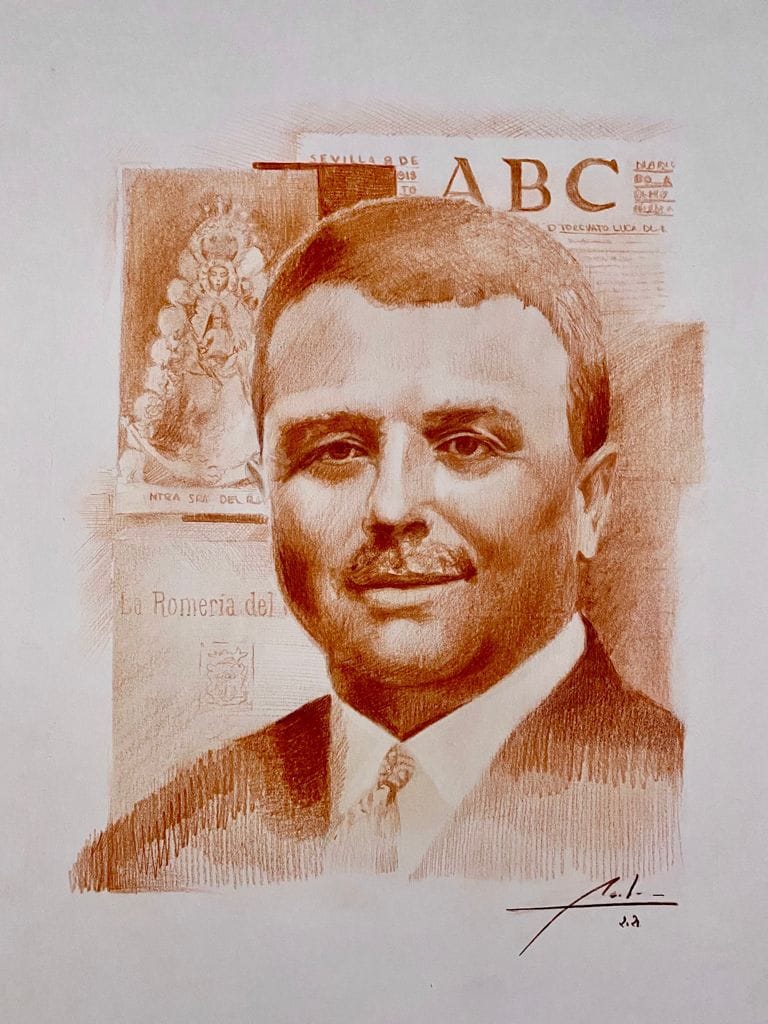 Retrato de Juan Infante Galán, autor del diseño original del retablo de la Ermita de la Virgen del Rocío. Obra de Cesar Ramírez